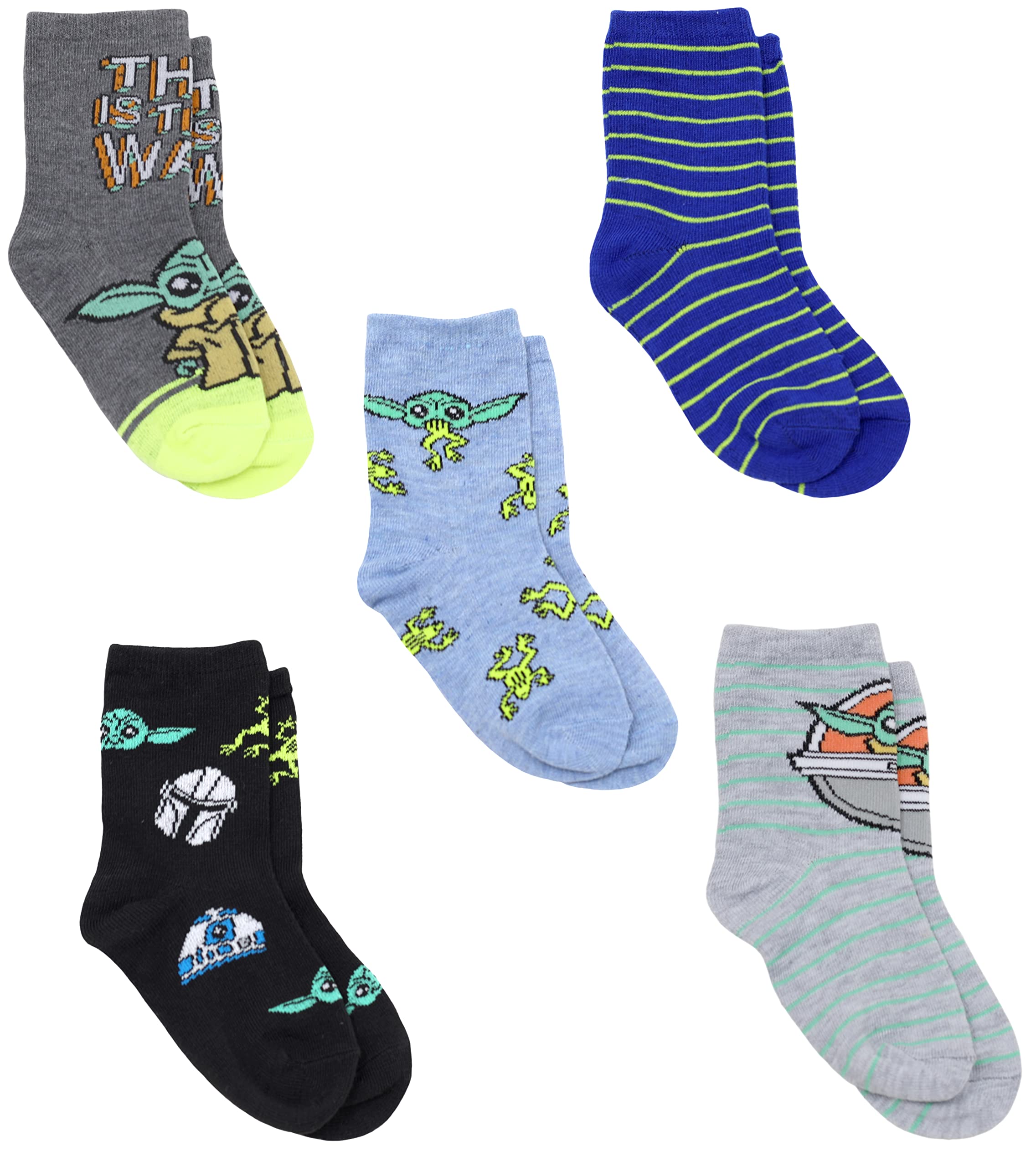 STAR WARS The Mandalorian Baby Yoda Novelty Crew Socks for Boys Multi Pack of 5, Grey, Small